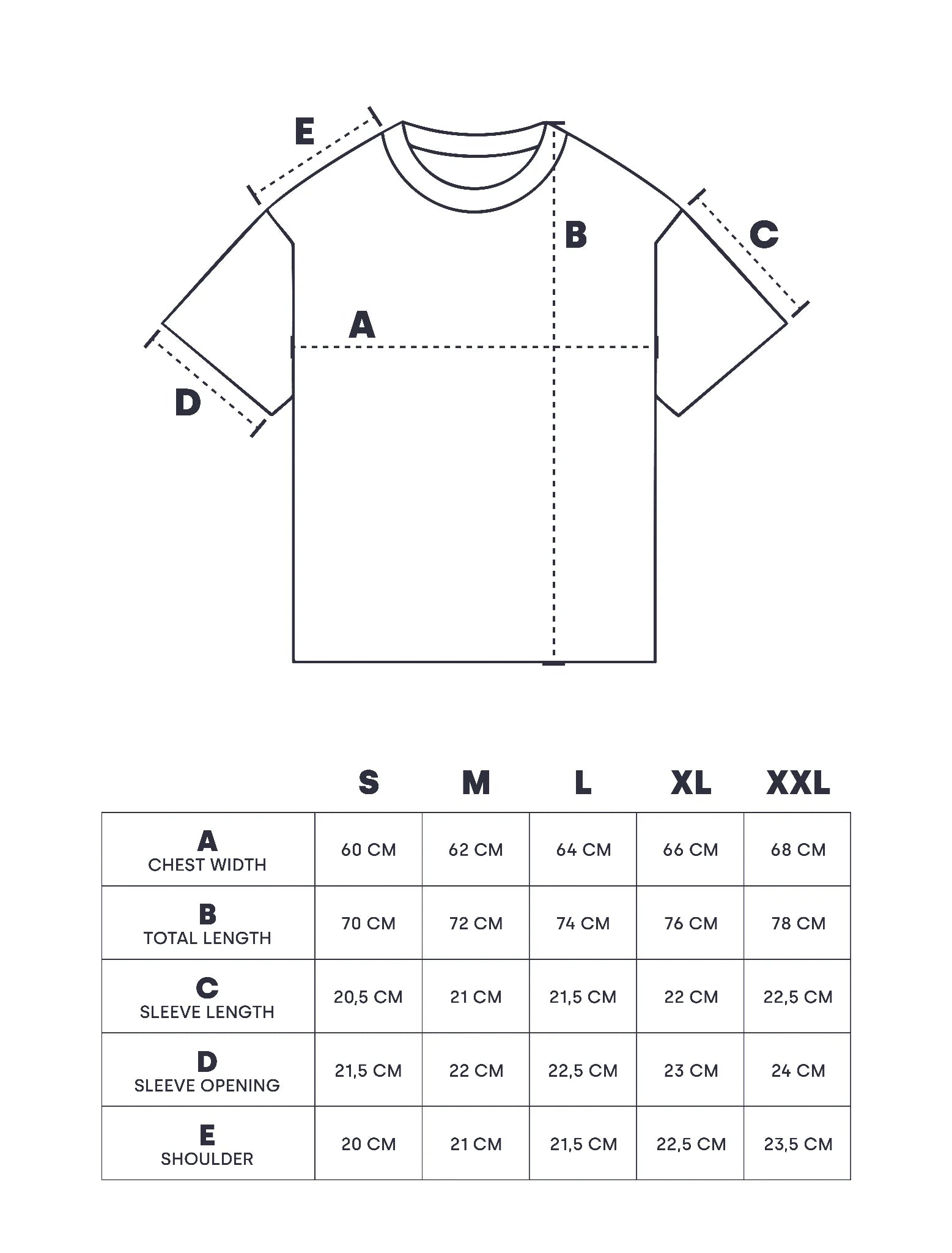 Der Fit unserer Shirts ist sowohl Oversized mit gesenkten Schultern und längeren Ärmeln, als auch Boxy, wodurch sie etwas kürzer geschnitten sind. Unsere Größen sind true to size - solltest du längere Shirts bevorzugen, empfehlen wir die Wahl einer Nummer größer, als du aktuell trägst. Unsere Größentabelle findest du auf der jeweiligen Produktseite.